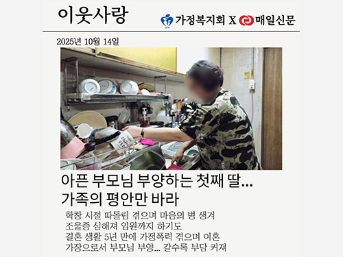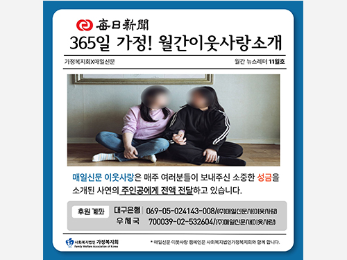 2019년 12월 10일 매일신문과 업무협약(MOU)을 체결하고, 대구·경북지역의 위기가정을 발굴하여 지원하는 ‘이웃사랑 캠페인’을 운영하고 있습니다. 갑작스러운 경제적 위기, 질병 등으로 생계와 일상 유지가 어려운 가정이 위기에서 벗어나 다시 안정을 찾을 수 있도록 경제적 지원과 전문적인 사례관리 등을 제공하여 가정의 회복과 자립을 돕고 있습니다.