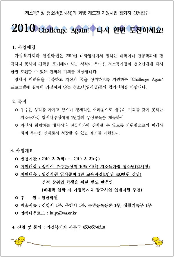 [추가모집] 2010 Challenge Again! 다시 한번 도전하세요!