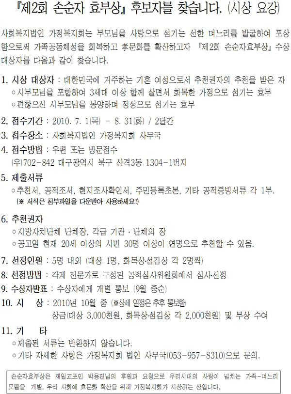 \"제2회 손순자 효부상\" 추가 공지