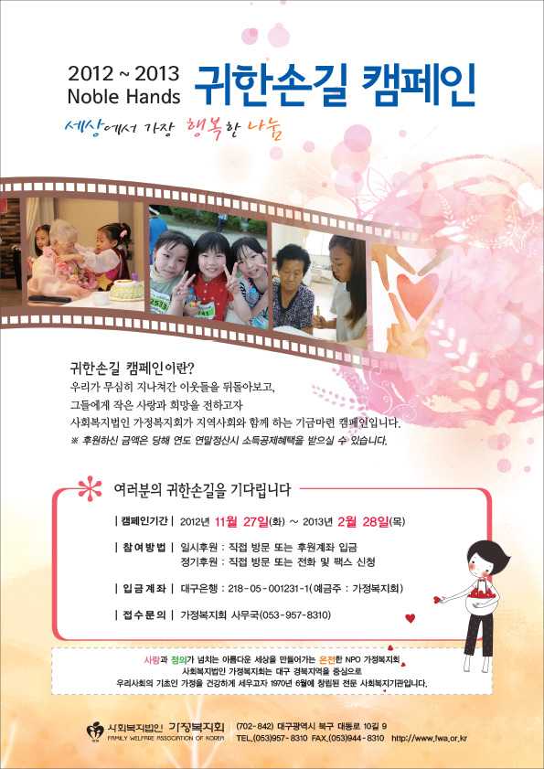 연말연시 세상에서 가장 행복한 나눔 \"2012~2013 귀한손길 캠페인\"에 동참해주세요.